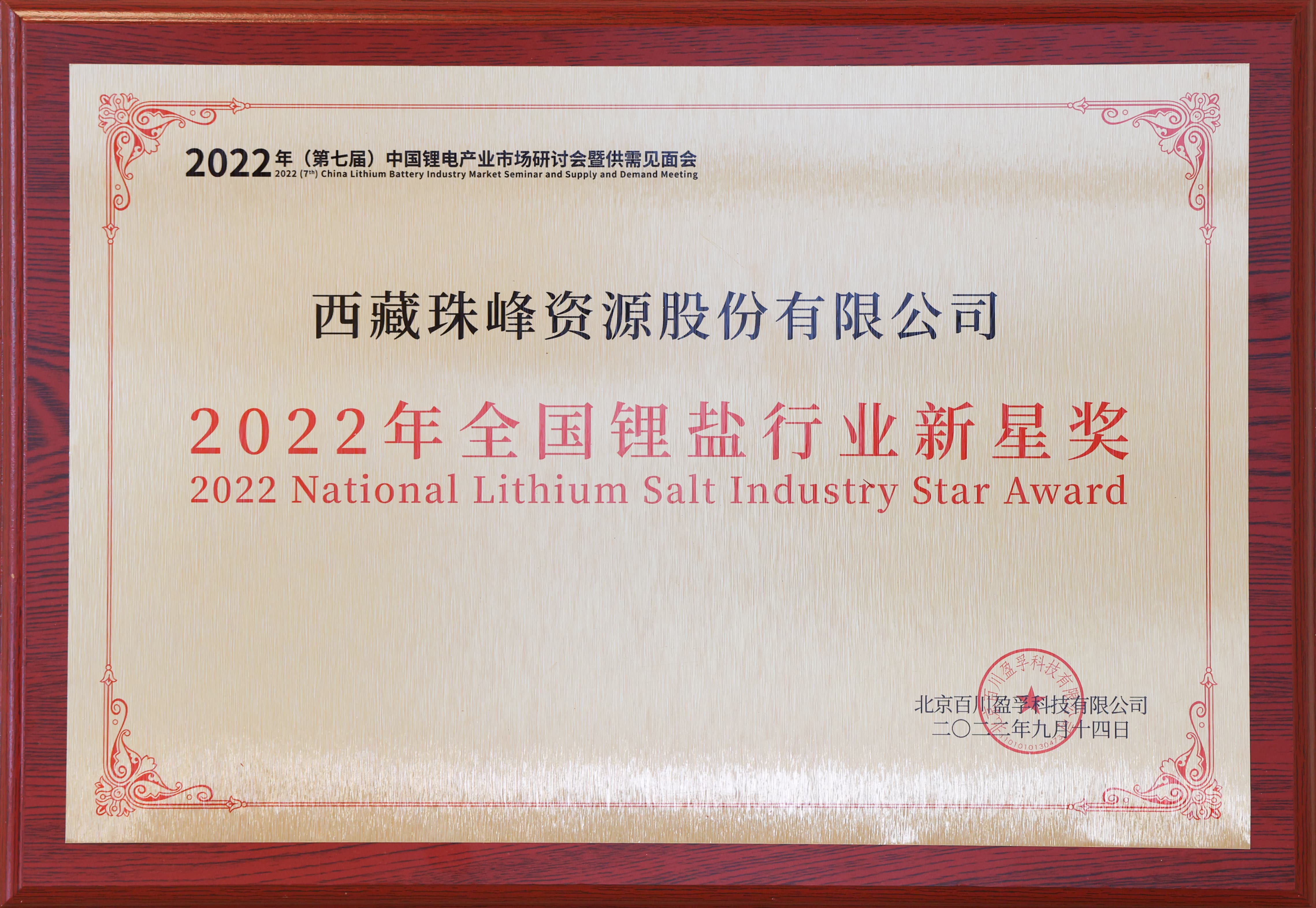 全國鋰鹽行業新星獎